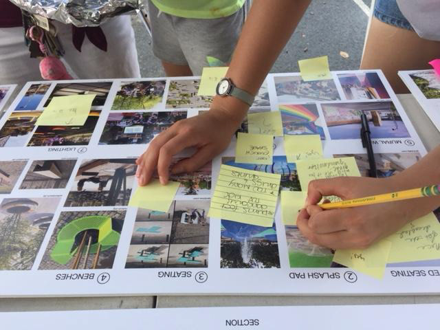 The design process included several community meetings where we talked with residents about their hopes for the park. This included the initial charrette with youth from Lena Park and a barbecue where we talked to older folks from the neighborhood and had them share their reactions to potential plans, programs, and site furnishings.